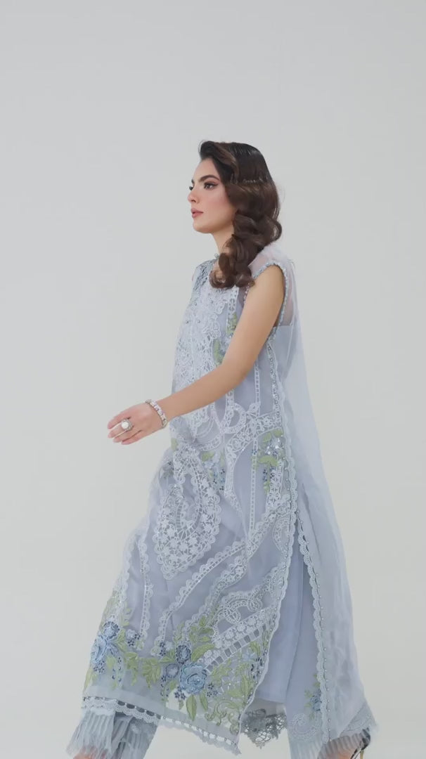 3 Piece Unstitched Embroidered Organza Suit | D-2509-B - Maria B