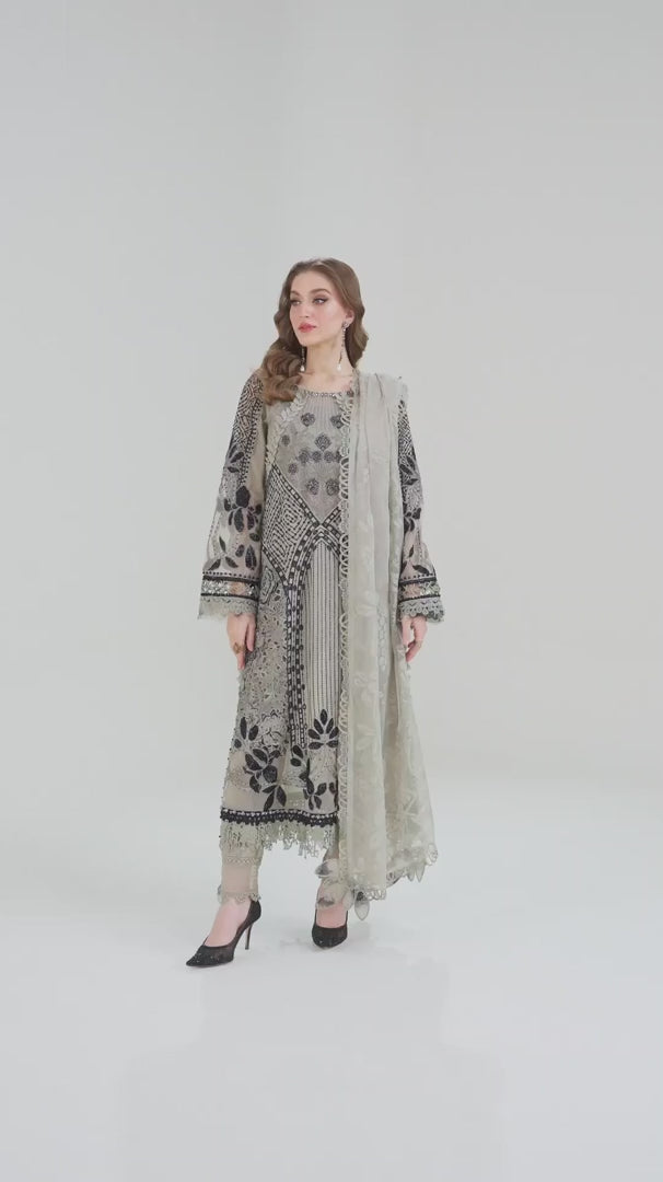 3 Piece Unstitched Embroidered Paper Cotton Suit | D-2510-B- Maria B