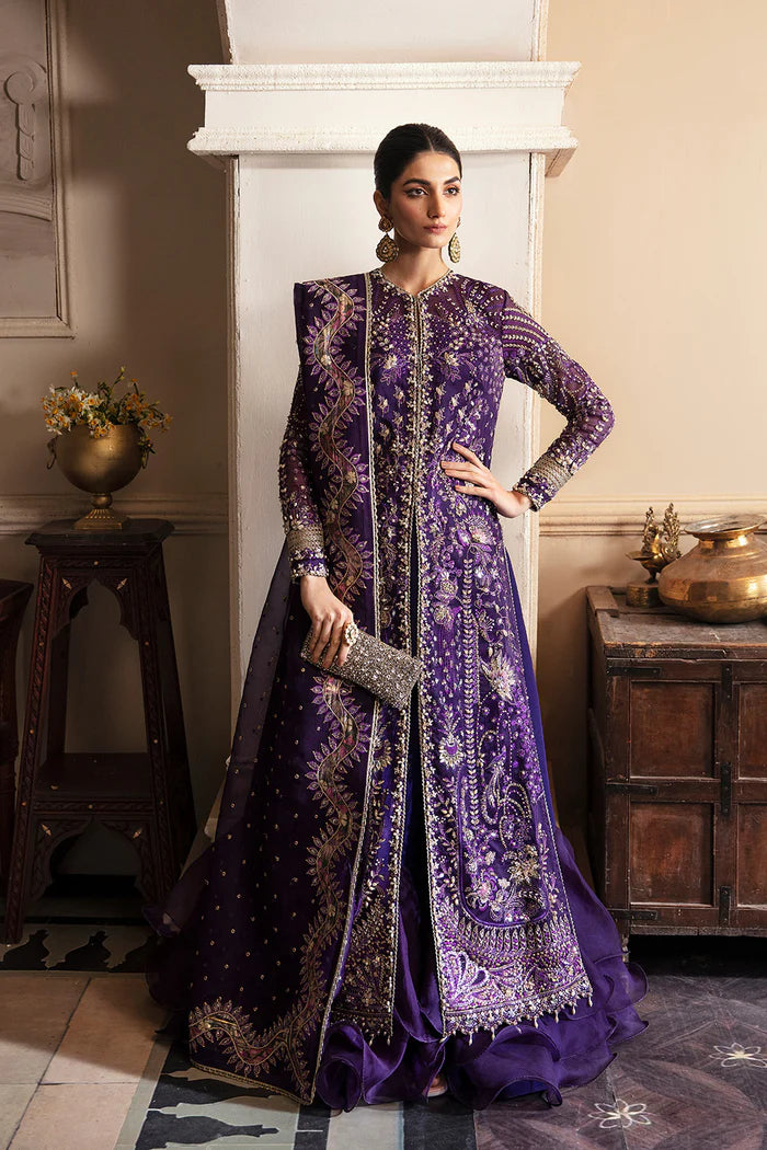 Introducing ‘MAYSA‘ the epitome of elegance and exuberance, Our Amethyst Color Organza ensemble is a harmonious blend of intricate handwork embellishment on the jacket with the side slits and daaman feature...