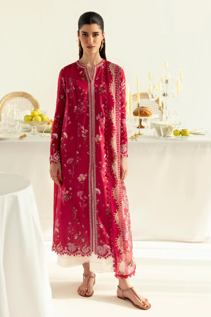 Shirt Digital Printed Front Digital Printed Back Digital Printed Sleeves Embroidered Border (Front & Sleeves)Embroidered Lace (Front Center) Dupatta Digital Printed Chiffon Dupatta TrouserPlain Trouser Fabric Details Shirt : Lawn (Printed) Dupatta : Chiffon (Printed)Trouser : Cotton (Dyed) Delivery Time Pakistan...