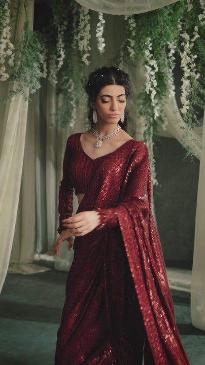 - Embroidered Chiffon Saree Fall