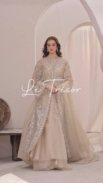 Immerse yourself in the serene beauty of our pista green ensemble, a perfect blend of traditional charm and contemporary sophistication. The long hand-embellished shirt is a true work of art, featuring...