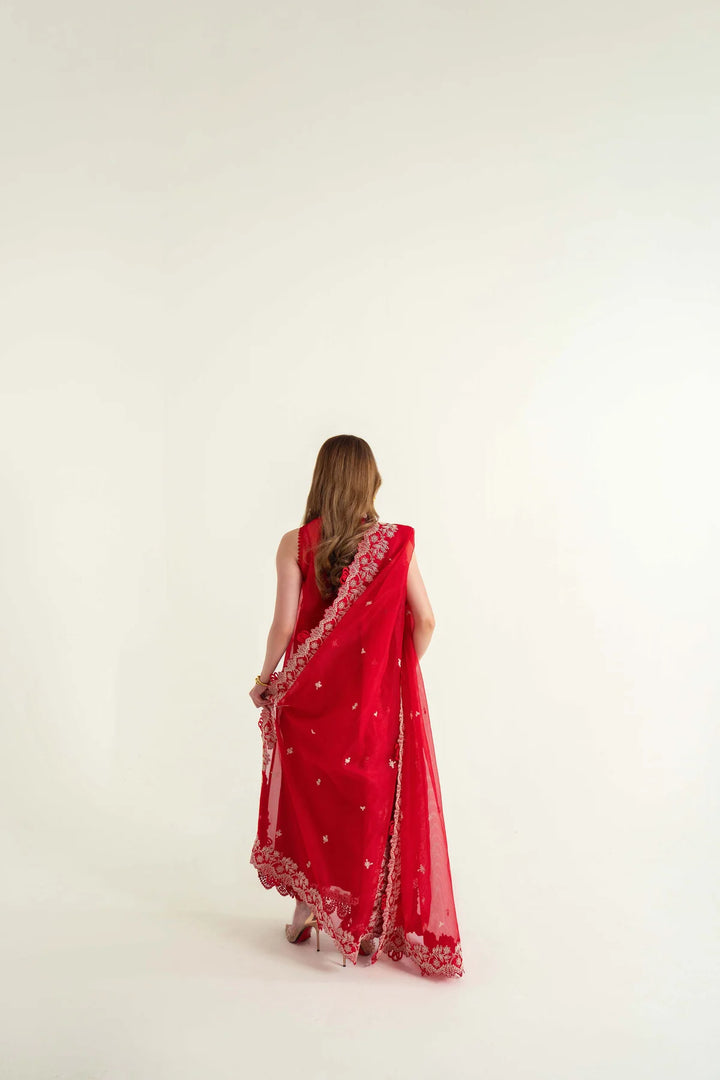 10. EMBROIDERED DUPATTA PALLU LEFT ON DYED RAJJO NET FABRIC W-13" 01