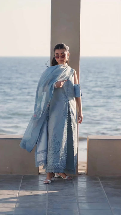 SONA 1: OCEAN MIST LUXURY LAWN EMBROIDERED SET 2025 (NEL-25602) - Zaib